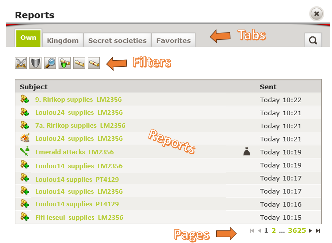 In deiner Spielwelt steht die Zeit nie still. Egal, ob du online oder offline bist, das Spiel entwickelt sich ständig weiter. Damit du immer den Überblick über alles hast, was mit deinem Konto, deinem Königreich oder deinem Geheimbund passiert, gibt's im Spiel Berichte. Sie fassen alle wichtigen Ereignisse zusammen und sind ein wesentlicher Bestandteil des strategischen Spiels.