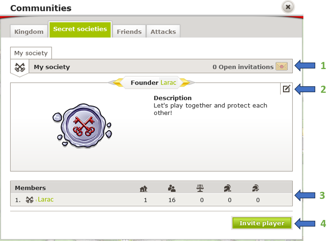 Kampf- und Kundschafter-Berichte – alles, was die Mitglieder so machen, auch Räuber-Angriffe.
