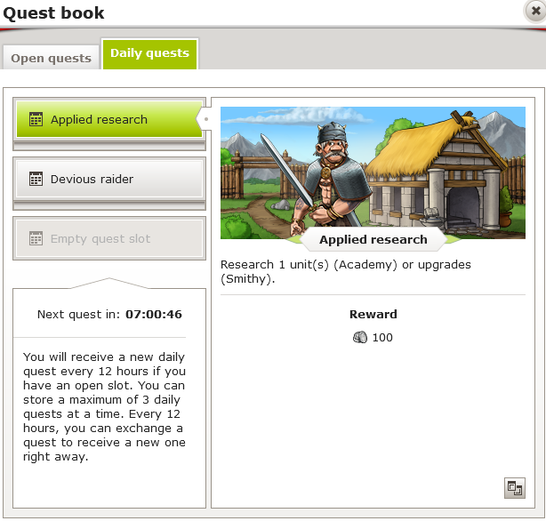 Jeden Tag gibt's bei Travian Kingdoms Mini-Aufgaben, die du machen kannst, um Belohnungen zu kriegen.