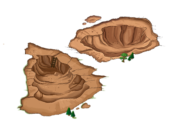 Aus der Lehmgrube wird der Rohstoff Lehm gewonnen. Je weiter die Lehmgrube ausgebaut wird, desto mehr Lehm kann produziert werden. Durch den Bau einer Lehmbrennerei lässt sich die die Produktion nochmals steigern.