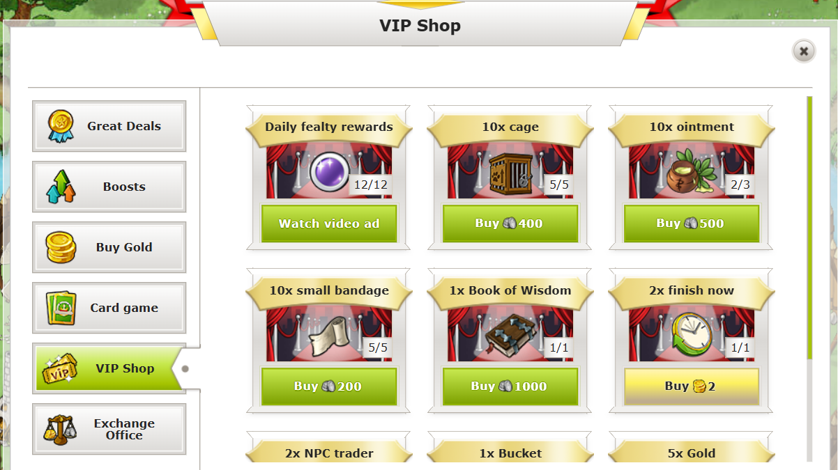 Sitters and duals with gold privileges can spend gold in the VIP shop.