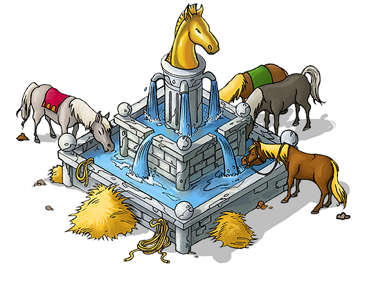 The Horse Drinking Trough cares for the well-being of your horses, lowers their crop consumption, and increases their training speed in Stables and healing speed in Healing Tents.