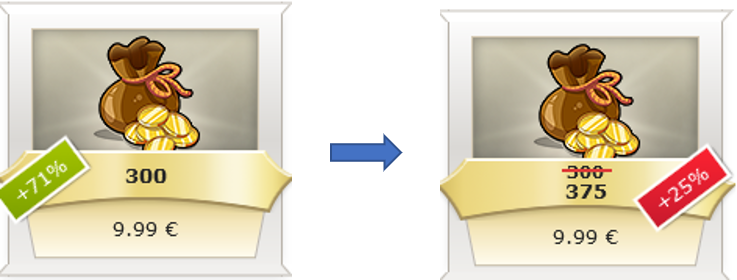 L'offre est valable uniquement quand le pack a une étiquette rouge qui montre clairement la quantité de Pièces d'or augmentée.