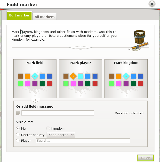 ? Les rois, vice-rois et ducs peuvent mettre des marqueurs visibles par tout le monde dans tout le royaume. Seuls eux peuvent modifier ou supprimer ces marqueurs.