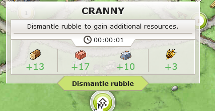 Les décombres, c'est ce qu'on appelle les débris qui traînent sur les chantiers au début du jeu ou après qu'un bâtiment a été détruit ou démoli. Tu peux le récolter et gagner des ressources.