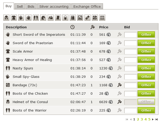 Les enchères permettent aux joueurs d'échanger des objets de héros en utilisant de l'argent. Le système fonctionne différemment des enchères habituelles :