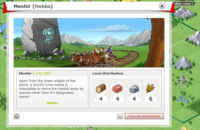 |  Bir menhiri kaldırmak ve ilgili daveti iptal etmek için: Haritada menhirin üzerine tıklayın. Dairesel menüden büyüteç simgesini seçin. Ayrıntılı görünümde daveti iptal etmek için tıklayın.