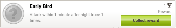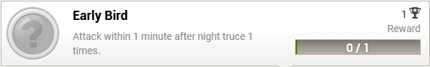 Yukarıdaki örnekte, bir başarının tüm seviyeleri gösterilmektedir. "Erkenci Kuş" oyuncuyu, gece ateşkesi'nin bitiminden itibaren bir dakika içinde belirli sayıda saldırıyı tamamlamaya davet eder (bu özelliği sunan Oyun dünyalarında).