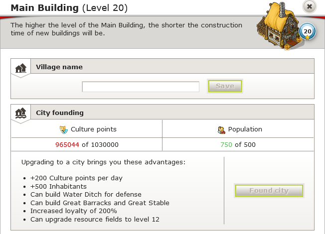 Bir köyü şehre yükseltmek kültür puanı tüketir, ancak genişleme boşluğunuzdan birini işgal etmez. Bu, imparatorluğunuzu güçlendirmek istediğinizde şehirleri yeni bir köy kurmaya alternatif olarak güçlü bir seçenek haline getirir.