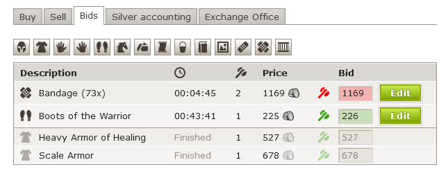 Başka bir oyuncu daha yüksek bir maksimum teklif verirse, sistem otomatik olarak sizin teklifinizi geçerek o oyuncunun maksimum teklifine ulaşana kadar teklif vermeye devam eder. Örnek: Başka bir oyuncu 1.500 Gümüş belirler. Bir sonraki adım sadece 1.170 olsa bile, 1.500'ün altındaki tüm teklifleri otomatik olarak geçeceklerdir.