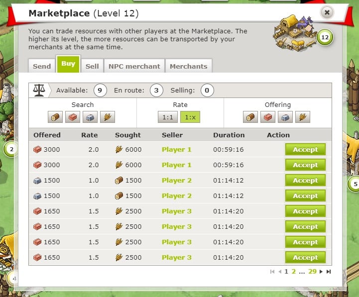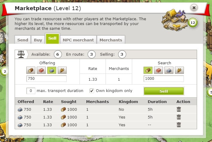Yeterli sayıda tüccarınız olduğunda, başka bir oyuncuya ne kadar ve hangi hammaddeleri göndermek istediğinize karar verebilirsiniz. Son olarak, tüccarları gönderebilmek için, hangi köye seyahat etmeleri gerektiğini seçmeniz gerekecektir.